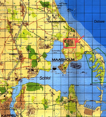 Maasholm-Bad befindet sich auf einer Halbinsel zwischen Schlei und Ostsee.